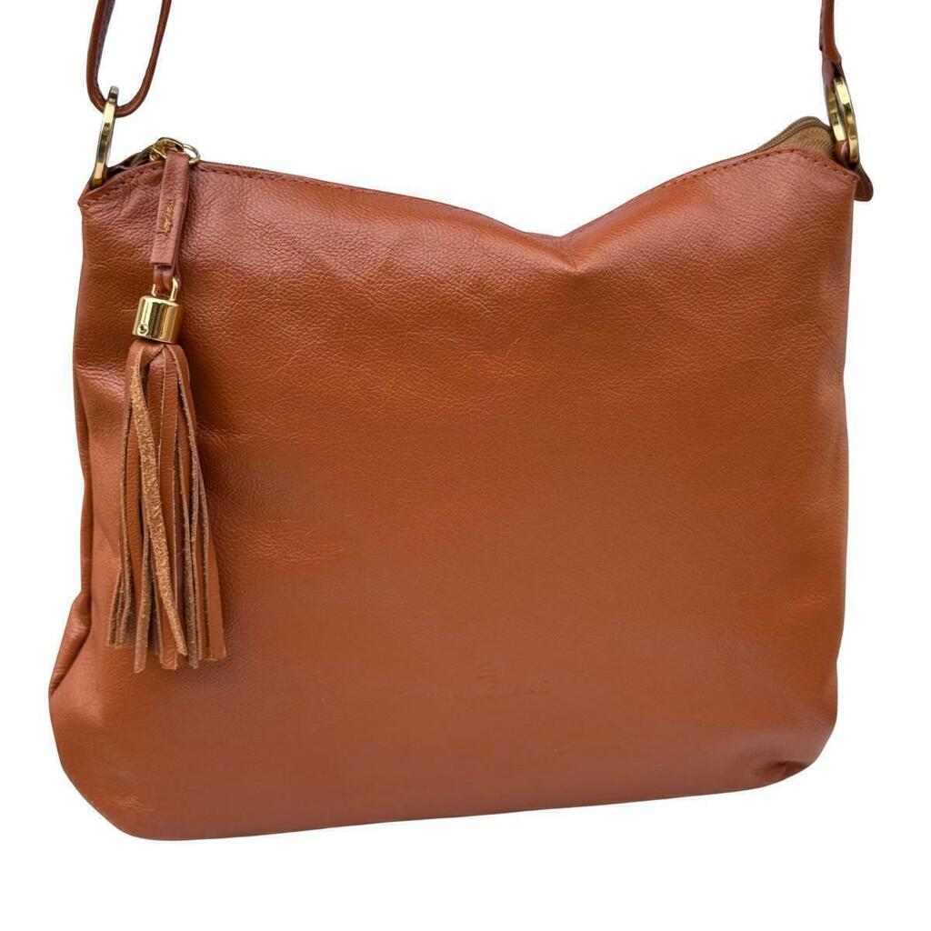 Confeccionada em couro legítimo. Alça transversal regulável.