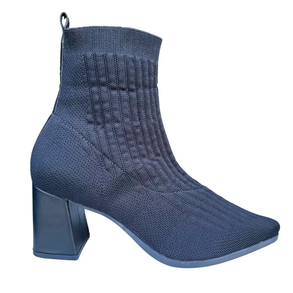 A bota possui sua construção em tecido knit, uma malha que calça super bem nos pés, delineando e deixando o look ainda mais ousado. Este modelo possui salto bloco medindo 7cm, trazendo assim um maior conforto pro dia a dia.