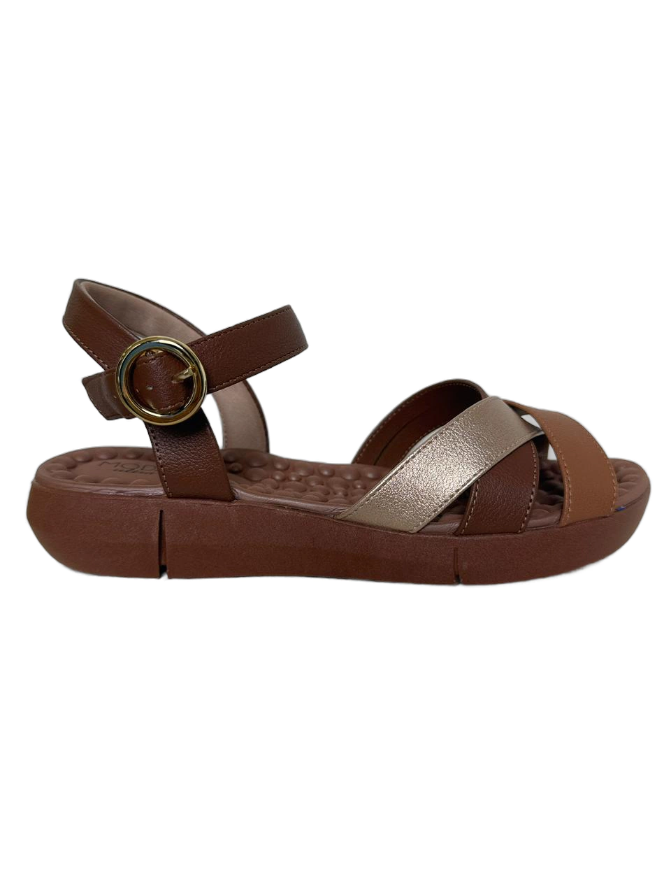 Com fechamento em fivela, é fácil ajustar a sandália ao formato dos pés, garantindo segurança e praticidade.