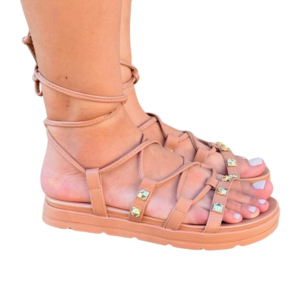 Com um design moderno e amarração ajustável, esta papete proporciona o ajuste perfeito para seus pés, garantindo conforto durante todo o dia. É a escolha perfeita para quem busca uma sandália que una estilo, conforto e um toque de personalidade ao seu visual. Os spikes adicionam um toque de personalidade e atitude à sandália, tornando-a um destaque em seu look, seu estilo versátil combina facilmente com uma variedade de looks, desde shorts e saias até calças jeans, adicionando um toque de descontração e charme ao seu visual.