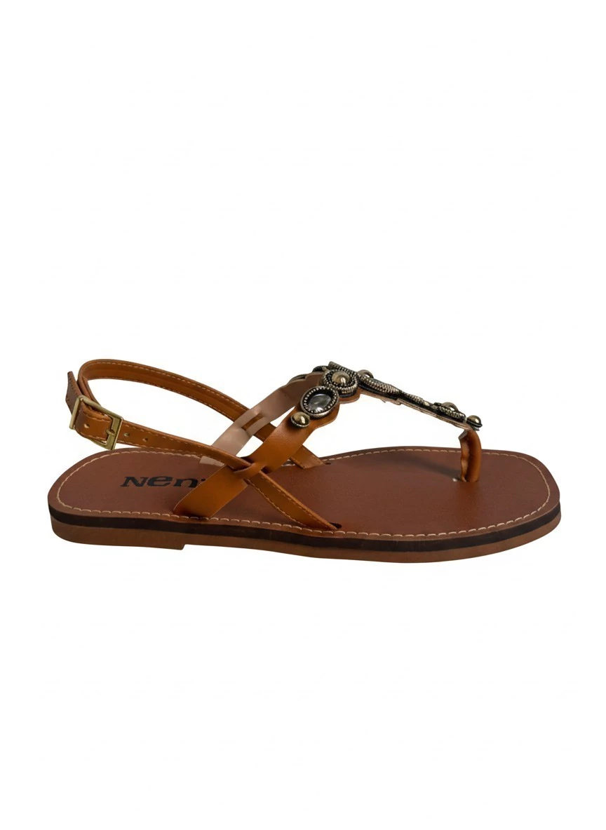 A Sandália feminina rasteira da marca NENA foi confeccionada em material sintético, tira de dedo e aplicação de pedras sintéticas no cabedal.