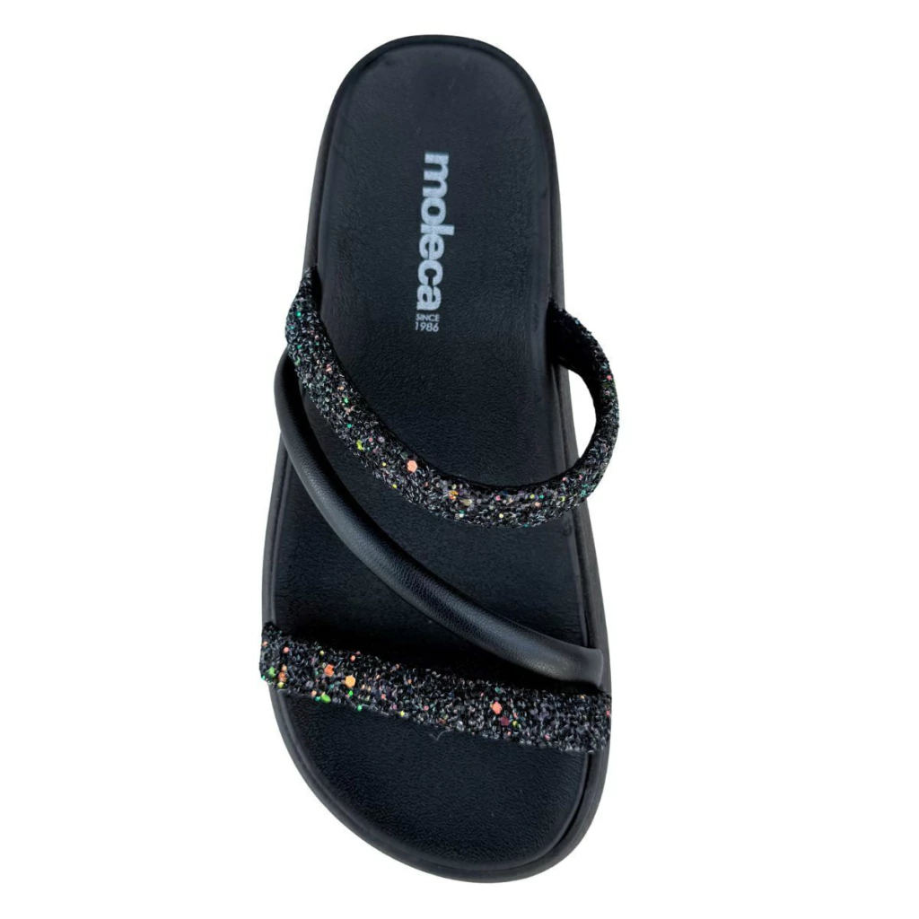 A papete Moleca foi desenvolvida com foco total no bem-estar. O design moderno deste chinelo com Strass, deixa seu look ainda mais despojado e estiloso. Desenvolvido em material resistente, possui design moderno e palmilha macia.. Ideal para quem precisa de leveza sem abrir mão de sustentação. Combina com looks comfy como vestido soltinho, shorts e macaquinho.