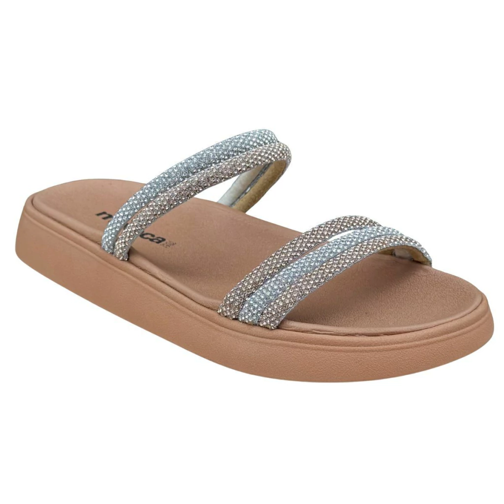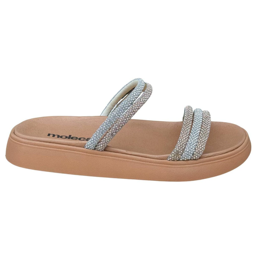 A papete Moleca foi desenvolvida com foco total no bem-estar. O design moderno deste chinelo com Strass, deixa seu look ainda mais despojado e estiloso. Desenvolvido em material resistente, possui design moderno e palmilha macia.. Ideal para quem precisa de leveza sem abrir mão de sustentação. Combina com looks comfy como vestido soltinho, shorts e macaquinho.