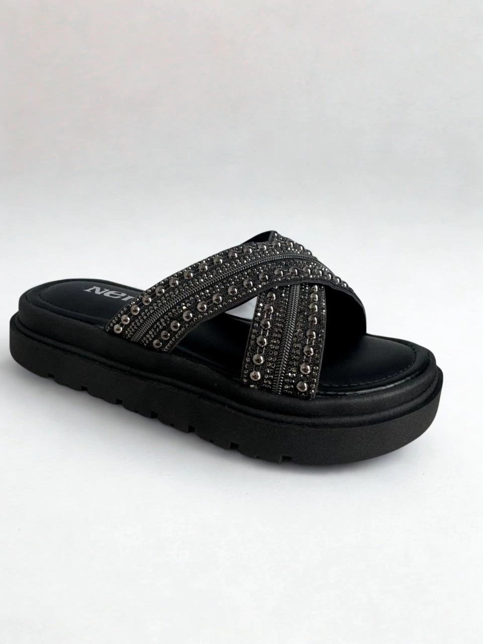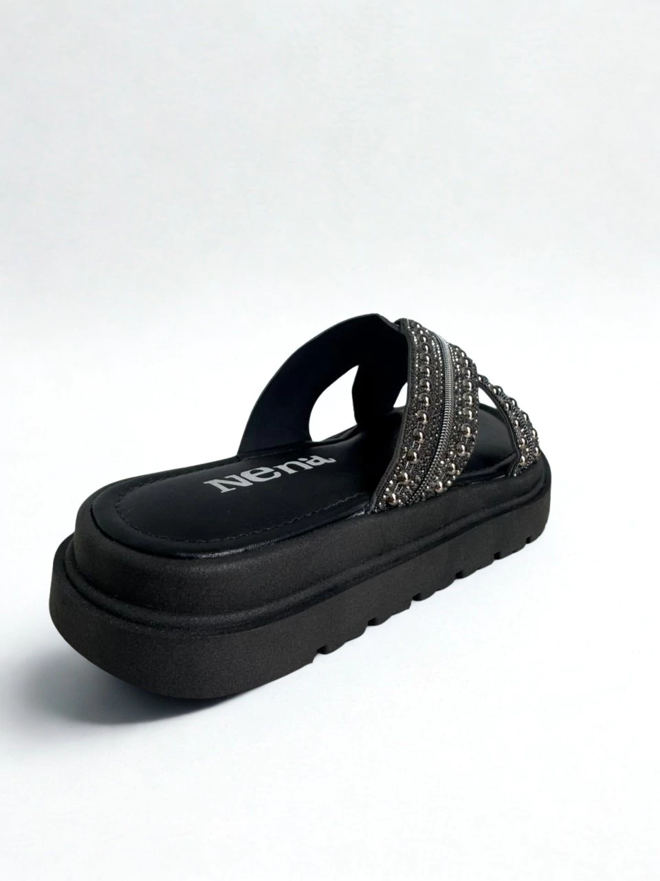 O Tamanco NENA Plataforma Tiras em X COM BRILHOS Preto é a peça-chave para quem valoriza sofisticação e conforto. Com seu design moderno e elegante, as tiras em X se ajustam perfeitamente aos pés, proporcionando segurança e estilo. A plataforma garante conforto durante todo o dia, enquanto o tom preto versátil combina com diversas produções, desde looks casuais até mais arrumados. Ideal para elevar qualquer outfit, este tamanco é um verdadeiro must-have na coleção de quem ama estar na moda!